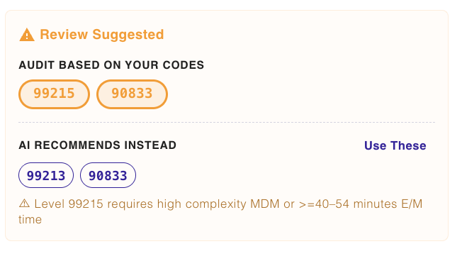 In some cases, JotAudit may suggest a custom payer-aware template that builds your note against payer rules from the start — reducing the number of issues that show up later.