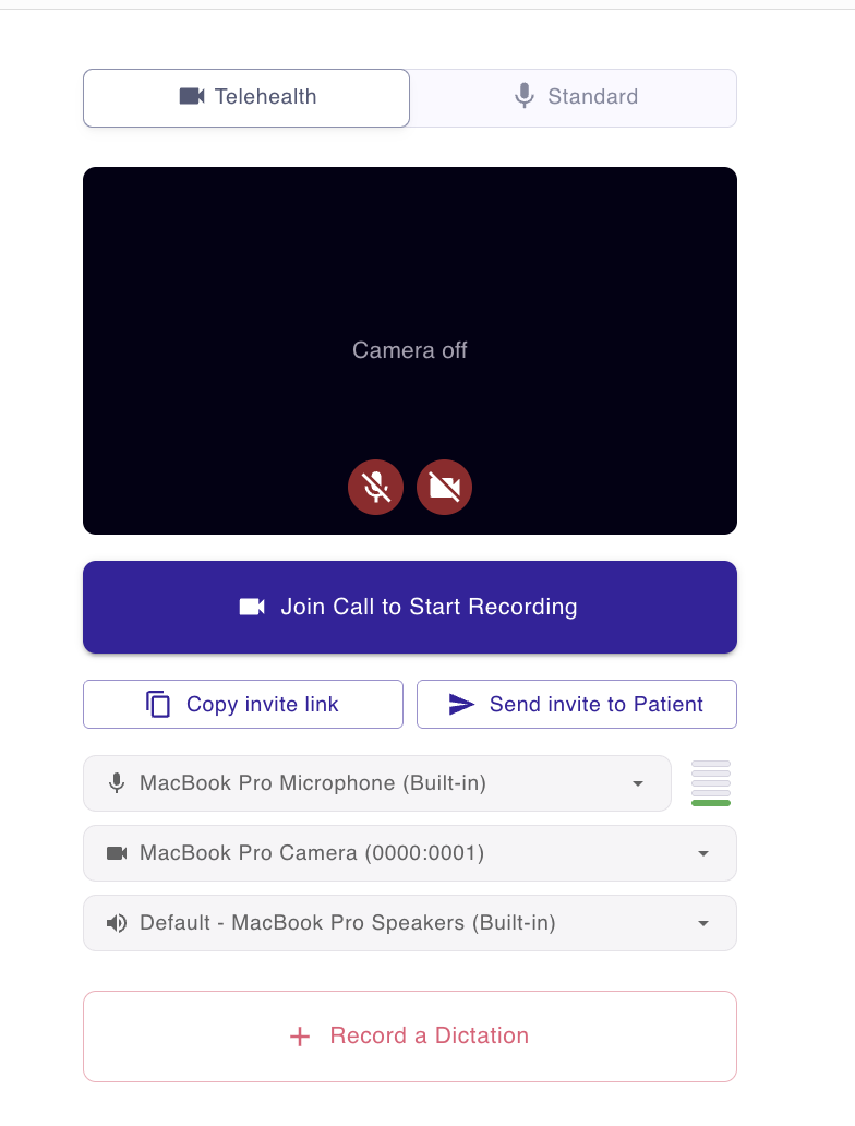 The standard recorder still works for in-person sessions. JotMeet doesn't change anything about your existing workflow for face-to-face visits.